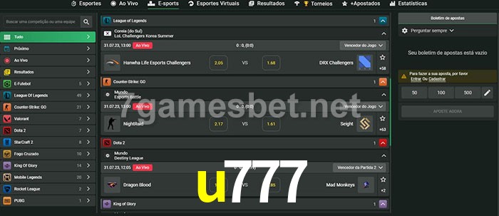 A aposta u777 oferece aos jogadores a experiência mais conveniente de apostas em eSports!